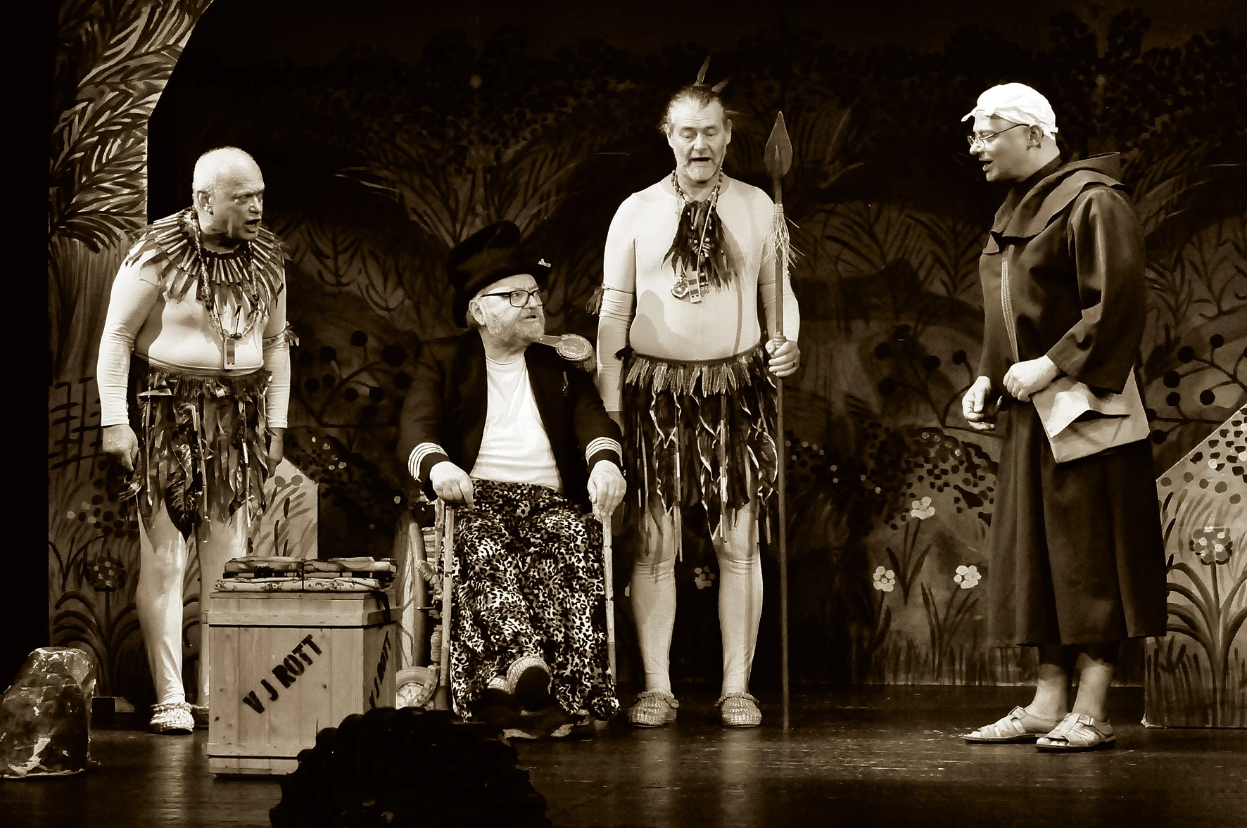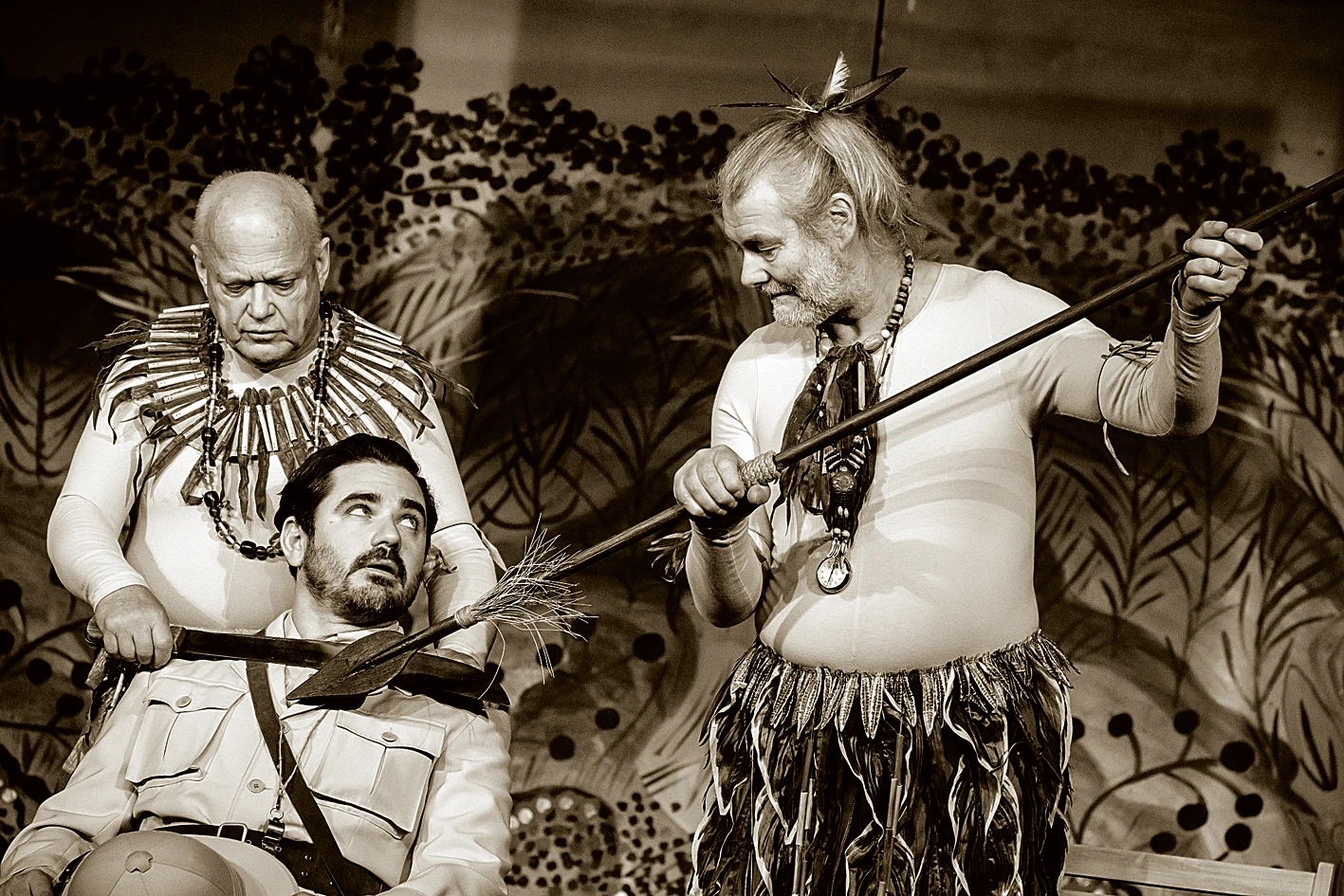 V pořadí objevů čtrnáctá Cimrmanova hra nás zavede do nitra kontinentu téměř nedotčeného civilizací. Čeští cestovatelé se tu setkají s podivným kmenem lidojedů a málem skončí na jejich jídelním lístku. Příslušníci tohoto kmene jsou zvláštní ve dvou směrech: svým vzhledem a svou neobyčejnou učenlivostí. Tyto vlastnosti umožnily Cimrmanovi vyřešit jazykové a inscenační problémy s elegancí, jakou mu ostatní světoví dramatikové mohou jen závidět. Kdyby takové téma zpracoval dejme tomu G. B. Shaw, strávili by diváci v hledišti 5 až 7 hodin. Cimrman tu vystačil (nepočítáme-li úvodní vědecký seminář) s pouhou hodinou. Poprvé v historii Divadla Járy Cimrmana vystupuje na jevišti i živé zvíře.